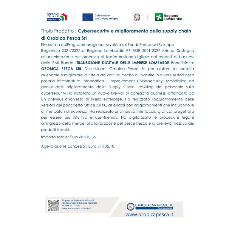 Fondata nel 1965, Orobica Pesca è oggi leader nel commercio di prodotti ittici e alimentari di qualità. Basata su affidabilità, innovazione e sicurezza (certificazione ISO 9001), offre un servizio attento grazie al Cash&Carry di Stezzano e a sei punti vendita nel territorio bergamasco.