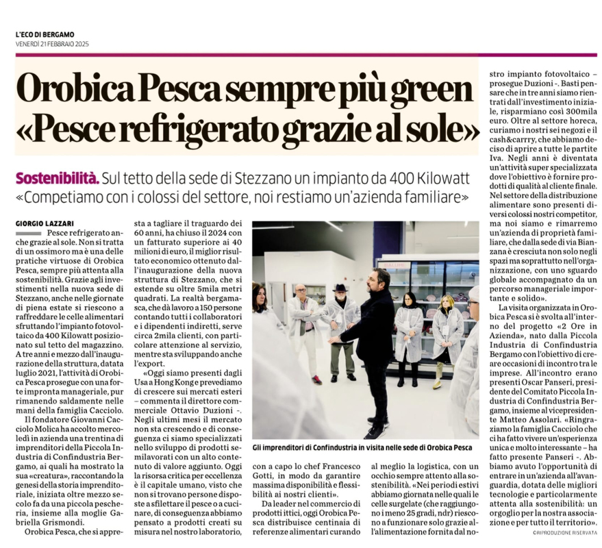 Orobica Pesca su L’Eco di Bergamo: innovazione e sostenibilità
